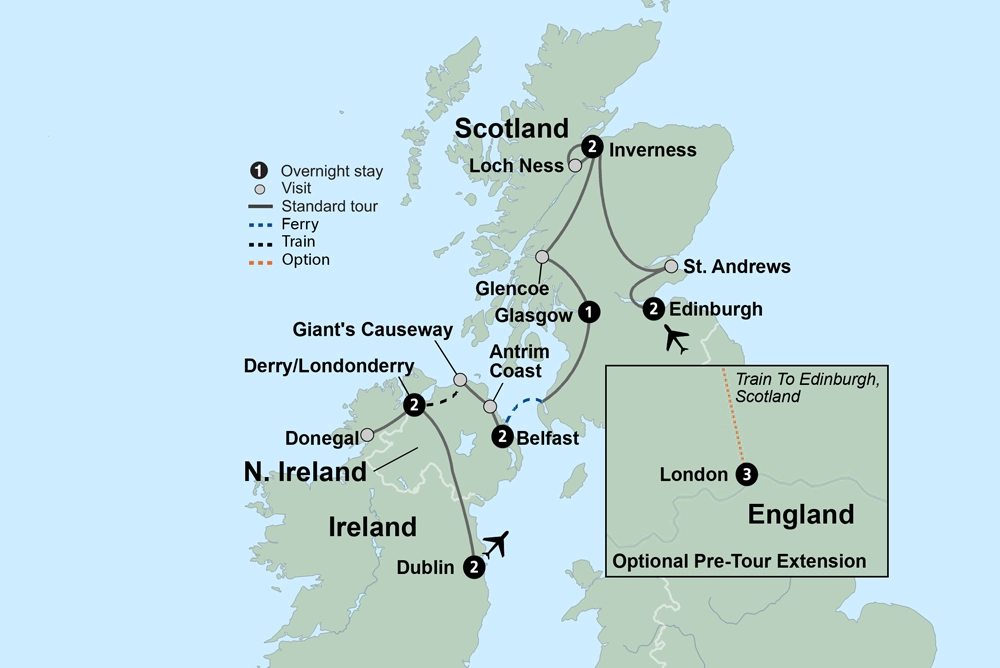From rugged natural beauty to vibrant and historical cities, the diverse charms of Scotland and Ireland await.