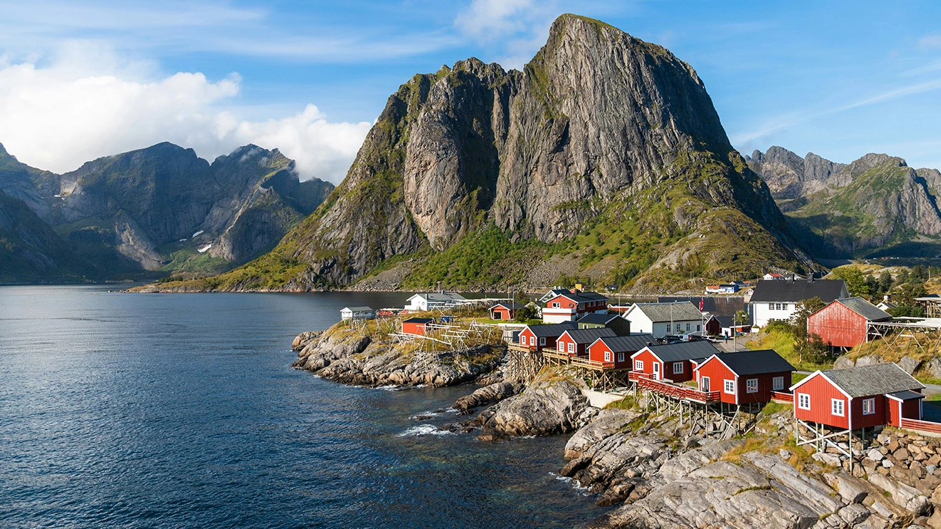 - Take in the stunning scenery of the Lofoten, with its jutting peaks and colorful villages.