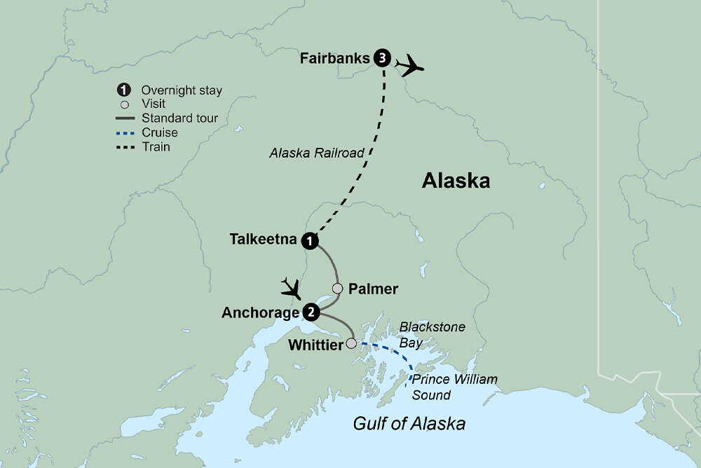 Your journey starts in Fairbanks, in the great state of Alaska. Originally a gold rush boomtown, it's now known as the “Golden Heart of Alaska.” Due to varied arrivals, there are no group activities planned for today, so enjoy a chance to explore and have dinner on your own.